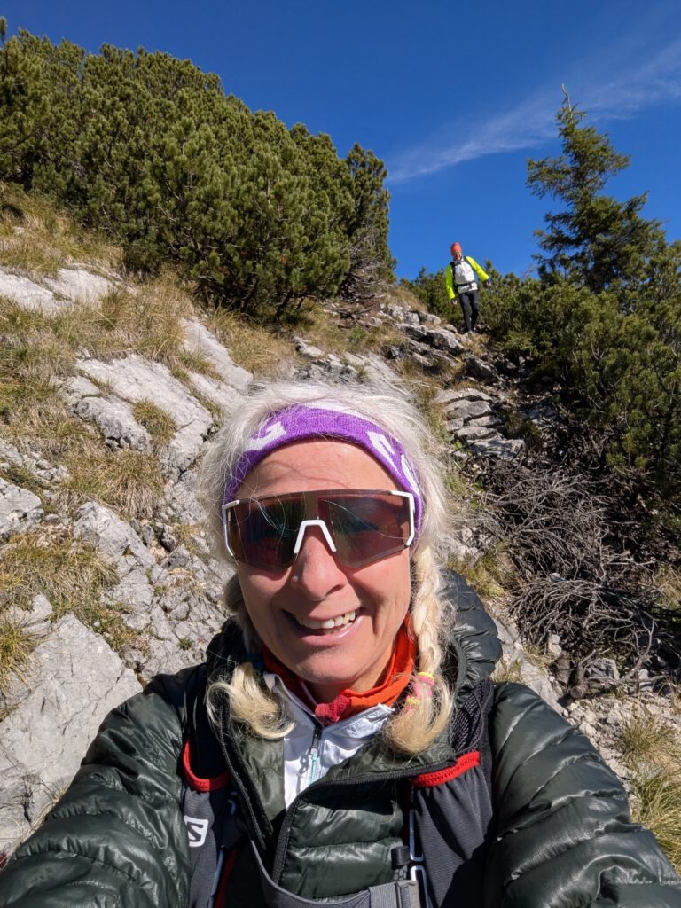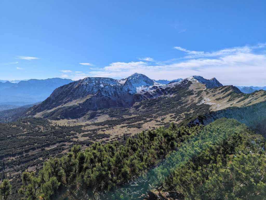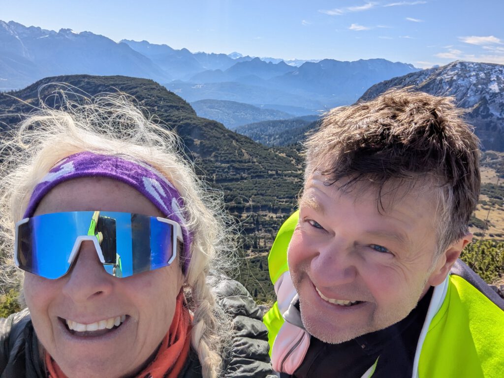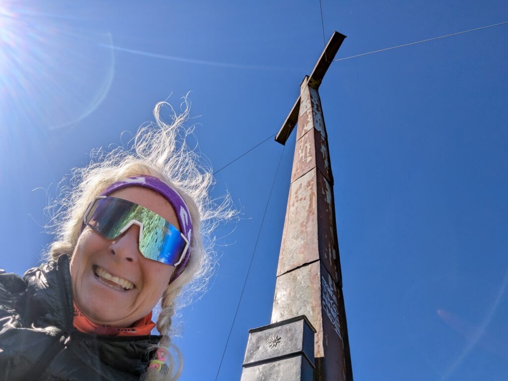 Am Gipfel legen wir eine kurze Rast ein, essen ein paar Riegel und genießen den Ausblick.