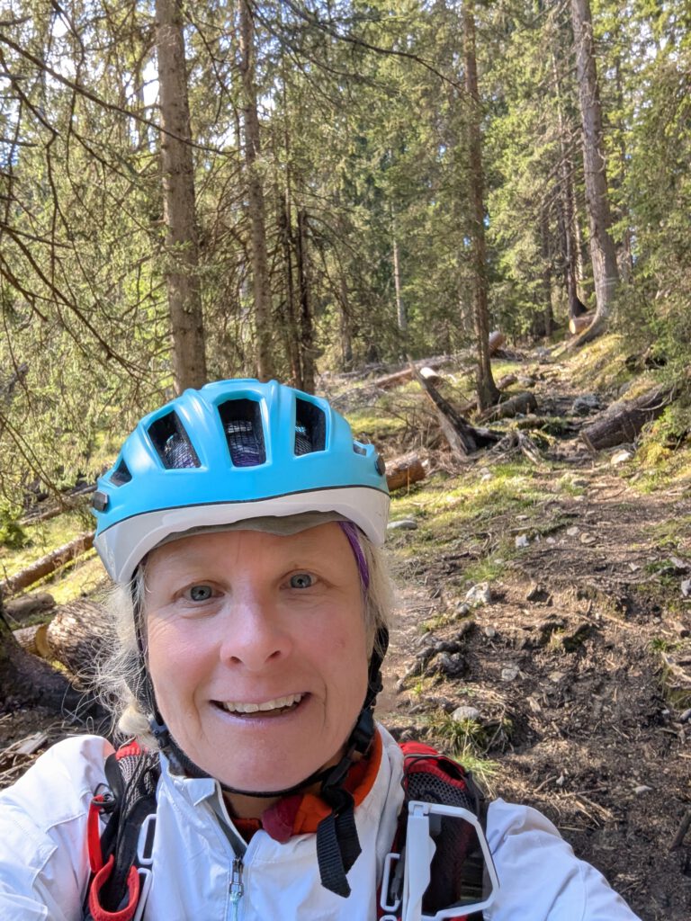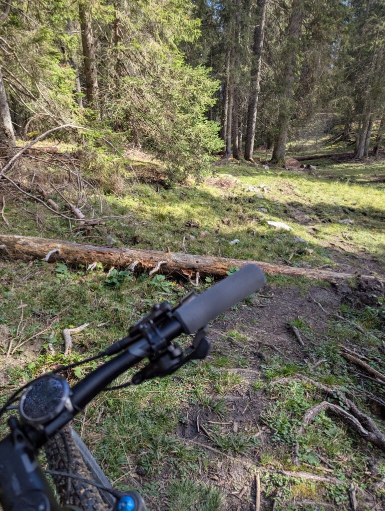 Wir parken am kostenlosen Parkplatz an der Autobahnausfahrt Eschenlohe. Nach kurzer Anfahrt durch Eschenlohe geht’s es auf der Forststraße hoch in Richtung Hohe Kisten. Mit den leichteren Hardtails, mit dem wir mittlerweile unterwegs sind, fährt es sich schon um einiges leichter bergauf als mit den Fullys. Auch wenn die Abfahrten mit weniger Federung natürlich nicht mehr so gemütlich sind und auch die Reifen auf unseren Hardtails nicht den Grip haben wie wir das von den Nobby Nics auf unseren vollgefederten Rädern gewohnt sind. Weniger Gewicht ist bergauf dafür umso angenehmer😀.